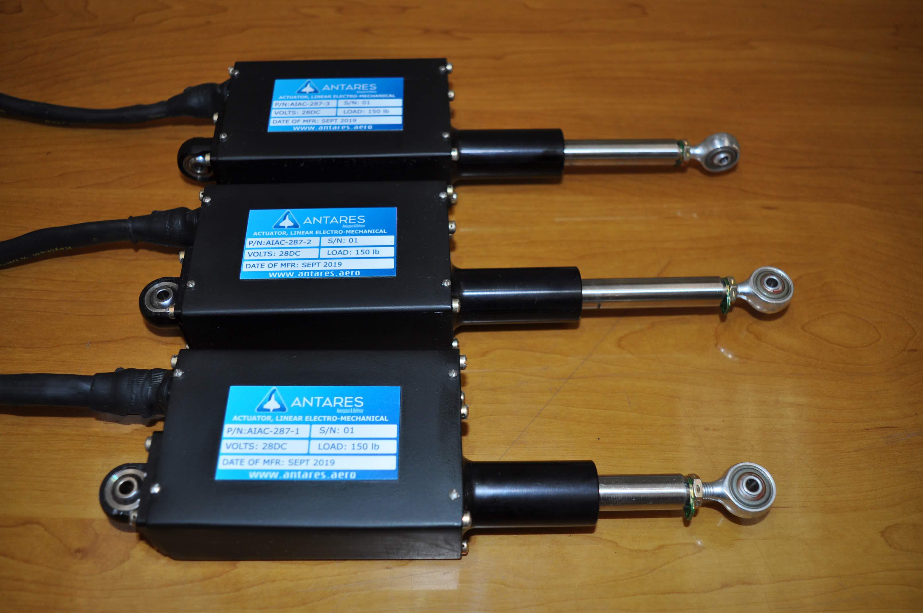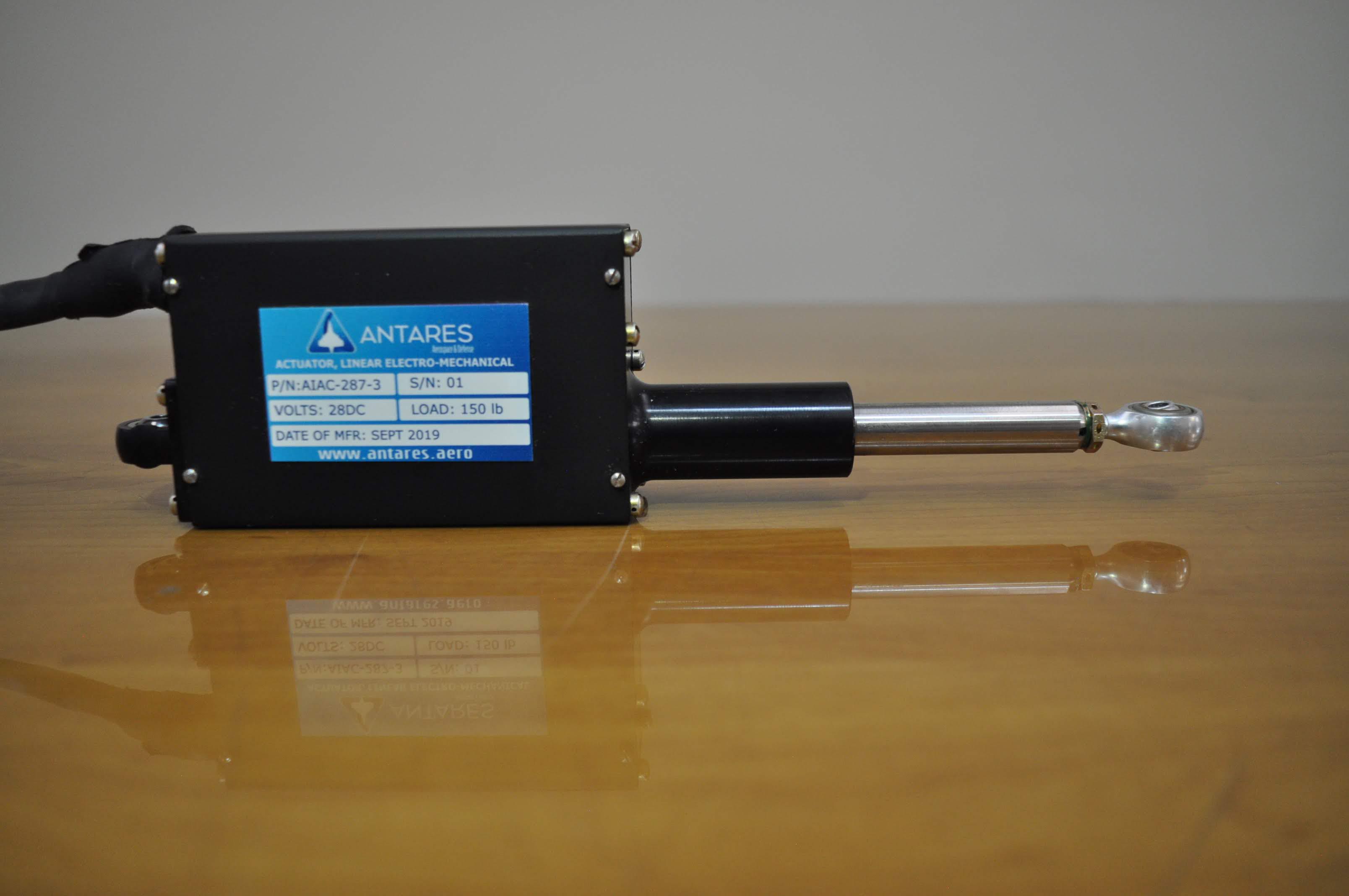 ACTUADOR LINEAL ELECTROMECÁNICO – ELEVADOR P/N: AIAC-287-3 Equipo: T-27 Función: Controla compensadores del elevador. Certificados: CCA 2016005 Rev. 00 (13 jun 2019), CTD (13 jun 2019), CPA 2016005-1 (31 dic 2019) Fabricante: Antares A&D |